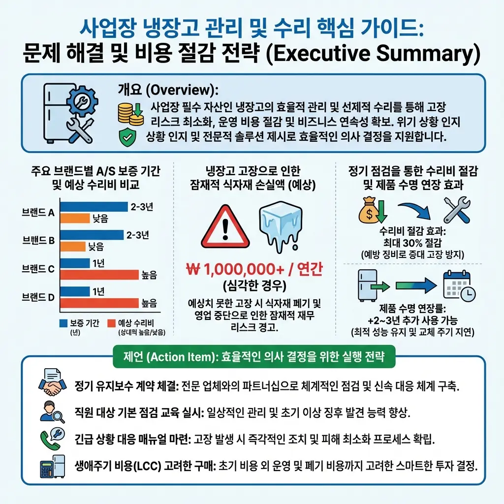 ⚠️ 주의! 사업장 냉장고 고장은 단순히 불편함을 넘어 사업의 존폐를 위협할 수 있는 심각한 문제로 인식해야 합니다.