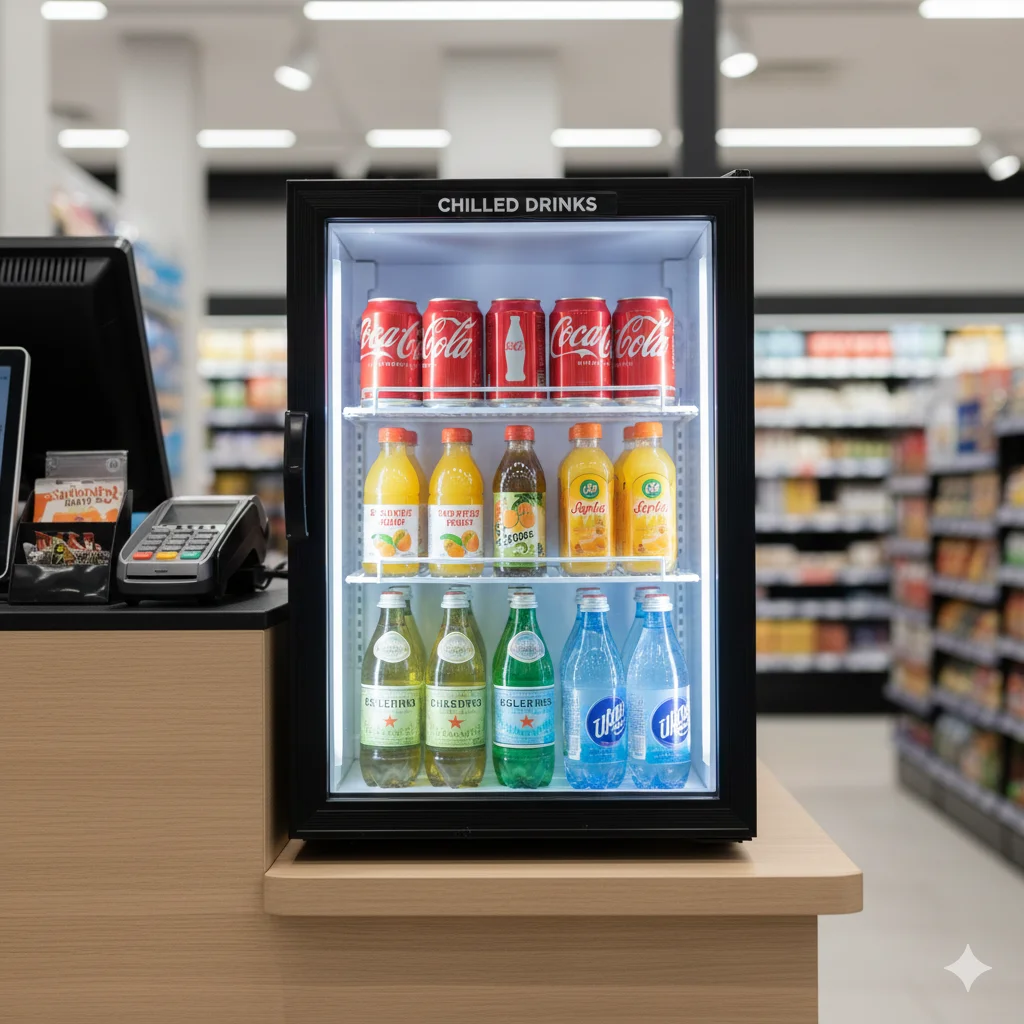 ๋ด๋ถ ์กฐ๋ช ์ ๋จ์ํ์ง๋ง ๋ฐ์ LED๋ฅผ ์ฌ์ฉํ์ฌ ์ํ์ ๋ผ๋ฒจ๊ณผ ๊ฐ๊ฒฉ์ด ๋ช ํํ๊ฒ ๋ณด์ด๋๋ก ์ค๊ณ๋ฉ๋๋ค.