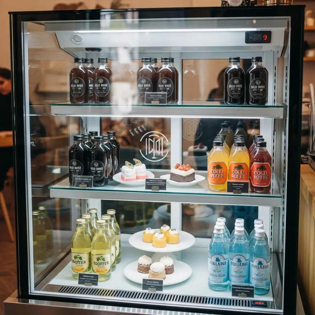 카페에서 브랜딩 냉장고는 신선한 재료와 프리미엄 음료를 돋보이게 하는 쇼케이스예요. 특별한 경험을 제공하는 공간임을 강조해야 합니다.
