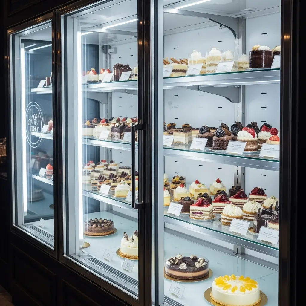 베이커리 브랜딩 냉장고는 케이크, 타르트 등 디저트의 신선도 유지와 아름다운 비주얼을 동시에 책임져야 합니다.
