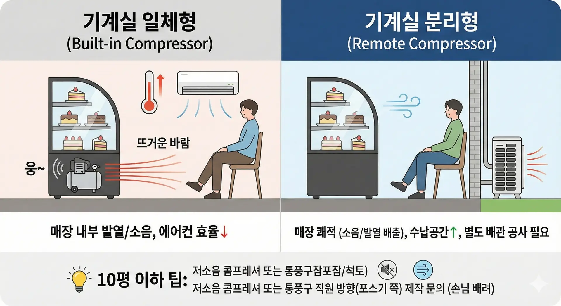 ๊ธฐ๊ณ์ค ์ผ์ฒดํ: ์ผ์ผ์ด์ค ํ๋จ์ ๊ธฐ๊ณ๊ฐ ๋ค์ด์๋ ํํ. ์ค์น๊ฐ ๊ฐํธํ์ง๋ง, ๋งค์ฅ ๋ด๋ถ๋ก ์ด๊ธฐ๋ฅผ ๋ฐฐ์ถํ๋ฏ๋ก ์ฌ๋ฆ์ฒ ์์ด์ปจ ํจ์จ์ ๋จ์ด๋จ๋ฆด ์ ์์ต๋๋ค.