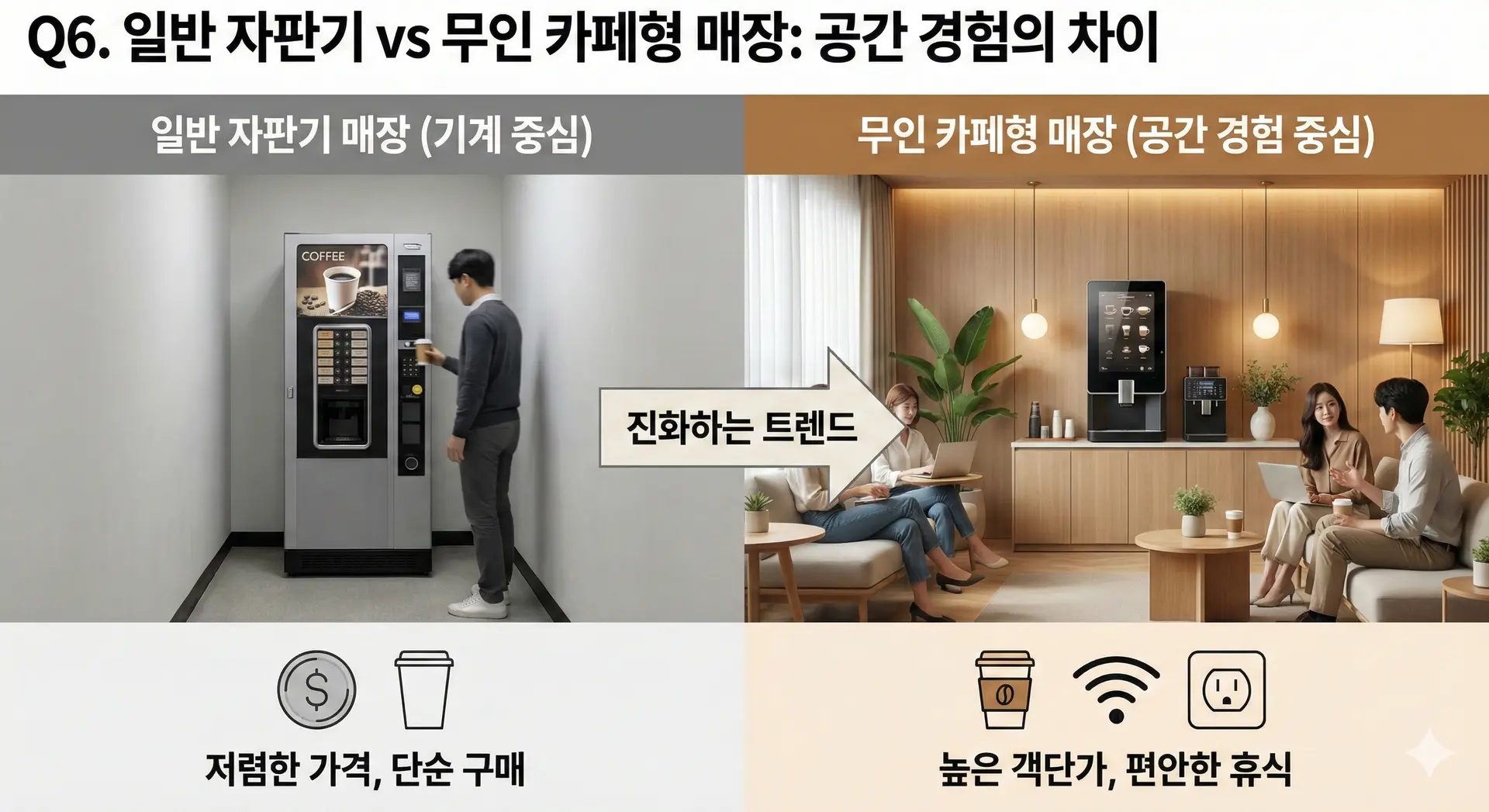 Q6. 최근 유행하는 무인 카페와 일반 커피 자판기 매장의 차이점은 무엇인가요?