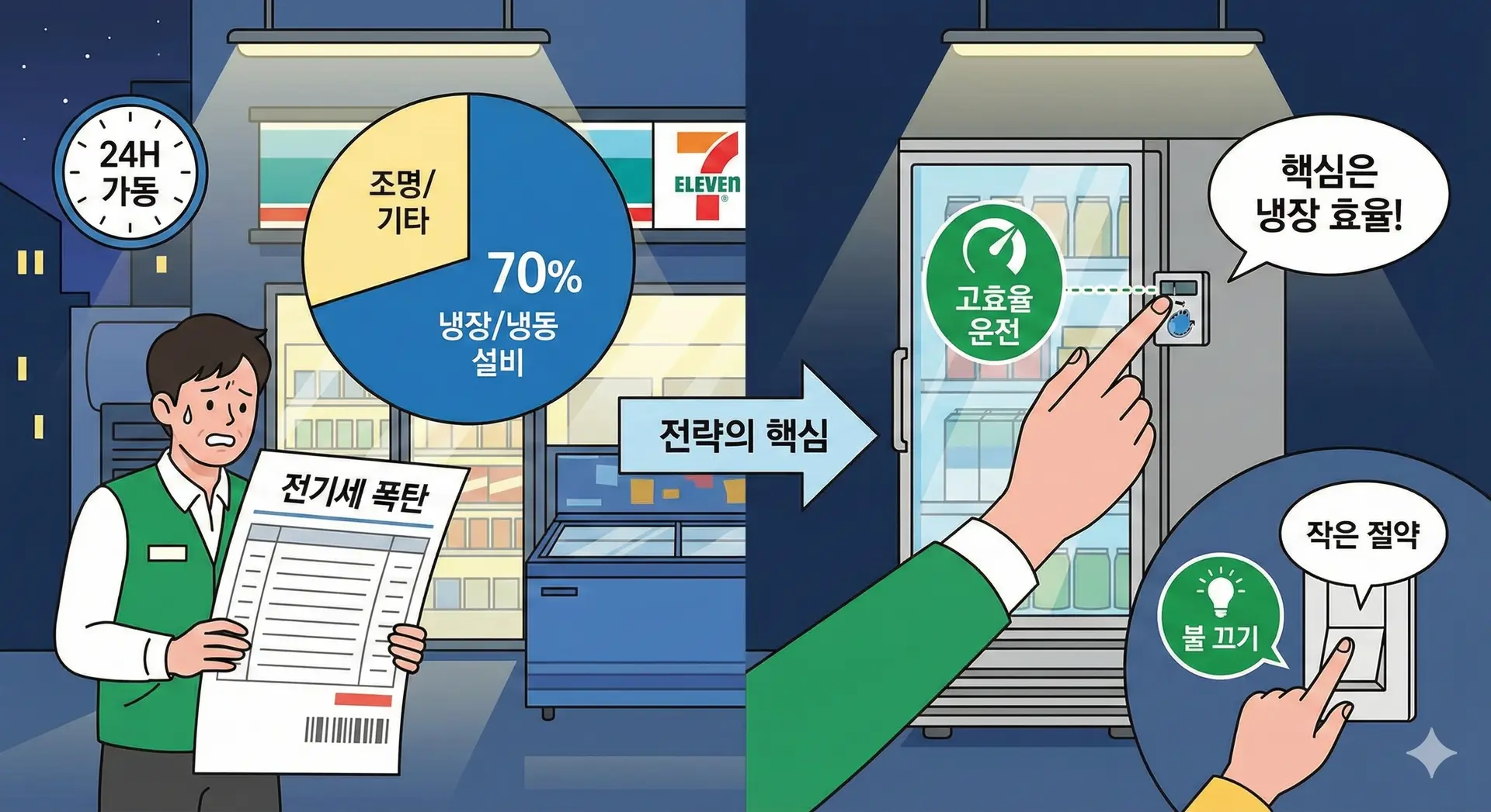 ๋ฐ๋ผ์ ํธ์์ ์ ๊ธฐ์ธ๋ฅผ ์ค์ด๊ธฐ ์ํ ๋ชจ๋ ์ ๋ต์ ํต์ฌ์ '์ด๋ป๊ฒ ํ๋ฉด ์ด ๋์ฅ ์ค๋น๋ค์ด ์ ๊ธฐ๋ฅผ ๋ ๋จน๊ฒ ํ ๊ฒ์ธ๊ฐ'์ ๋ง์ถฐ์ ธ์ผ ํฉ๋๋ค.