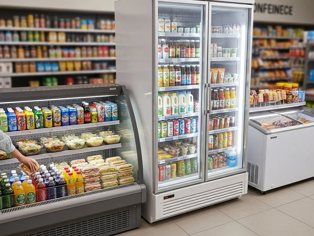 냉동식품은 전용 냉동고를 선택해야 합니다. 또한, 매장 크기에 맞춰 적절한 용량과 형태의 냉장고를 배치하여 고객 동선을 확보하고 진열 효과를 극대화하는 것이 중요합니다.