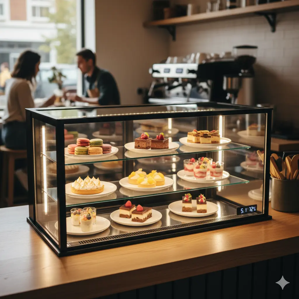 소규모 매장이나 협소한 카운터 공간에서 대형 쇼케이스는 설치 자체가 불가능할 수 있습니다. 카운터탑 쇼케이스는 바닥 면적을 차지하지 않고 카운터 위를 활용함으로써, 공간 효율성 최적화라는 큰 장점이 있습니다.