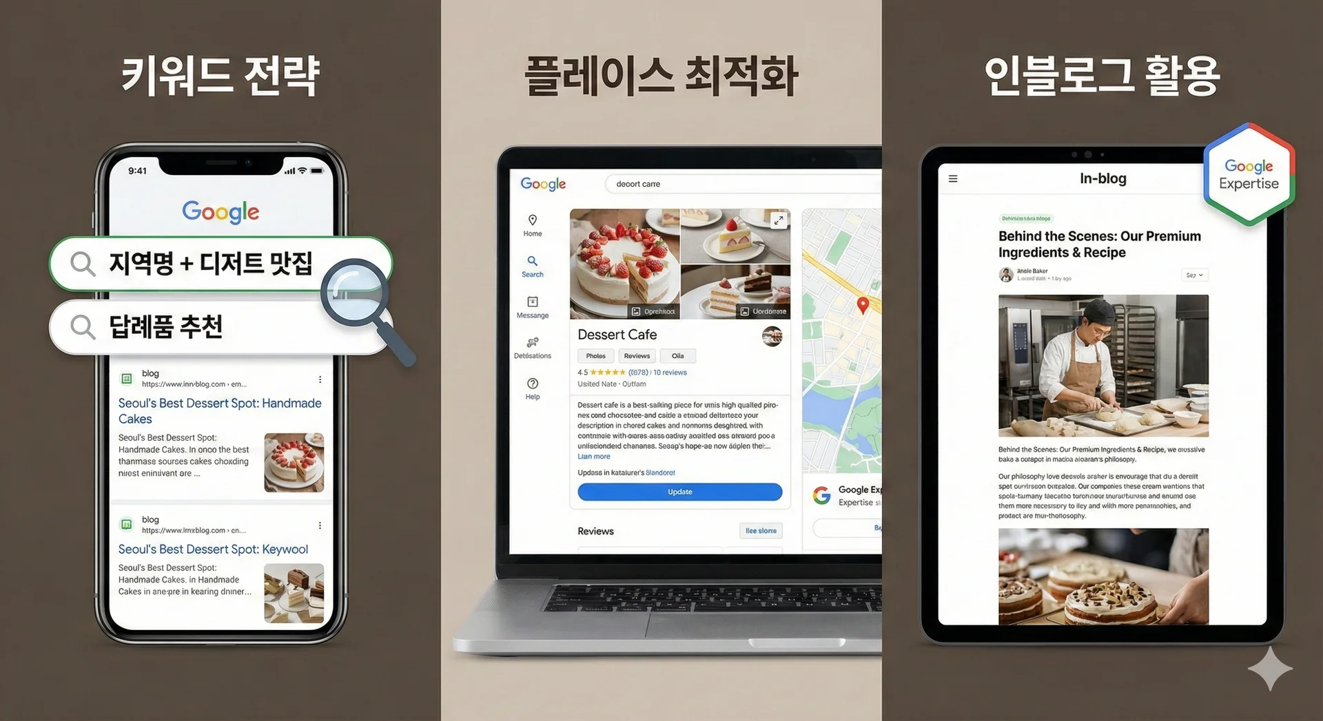 '์ง์ญ๋ช + ๋์ ํธ ๋ง์ง', '๋ต๋กํ ์ถ์ฒ', '์์ ์ผ์ดํฌ ์ฃผ๋ฌธ'๊ณผ ๊ฐ์ ํ๊ฒ ํค์๋๋ฅผ ๋ธ๋ก๊ทธ์ SNS ๊ฒ์๋ฌผ์ ์ ๋ต์ ์ผ๋ก ๋ฐฐ์นํ์ธ์.
