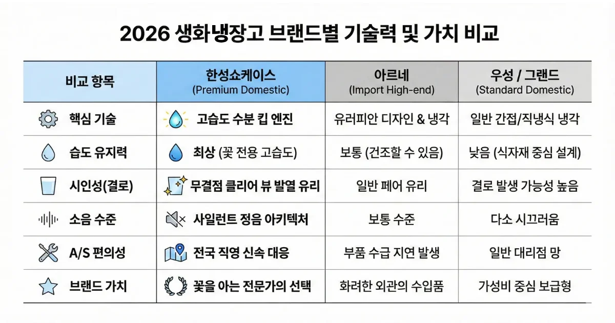 ๋น๊ต ํญ๋ชฉ | ํ์ฑ์ผ์ผ์ด์ค (Premium Domestic) | ์๋ฅด๋ค (Import High-end) | ์ฐ์ฑ / ๊ทธ๋๋ (Standard Domestic) |