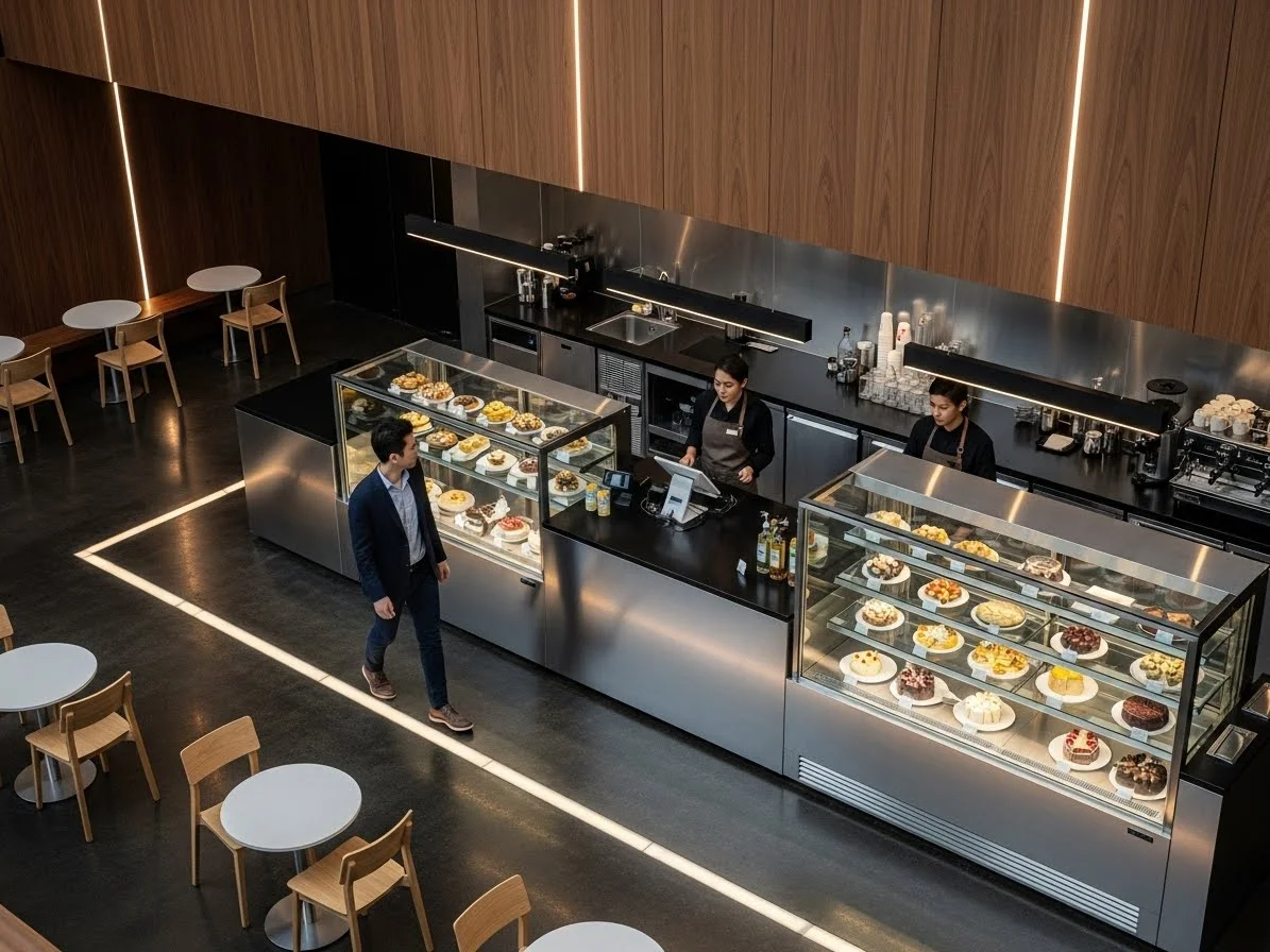 카페의 형태와 규모에 따라 쇼케이스 냉장고를 배치하는 전략도 달라져야 합니다. 주요 배치 유형별로 효과적인 전략을 알려드릴게요.