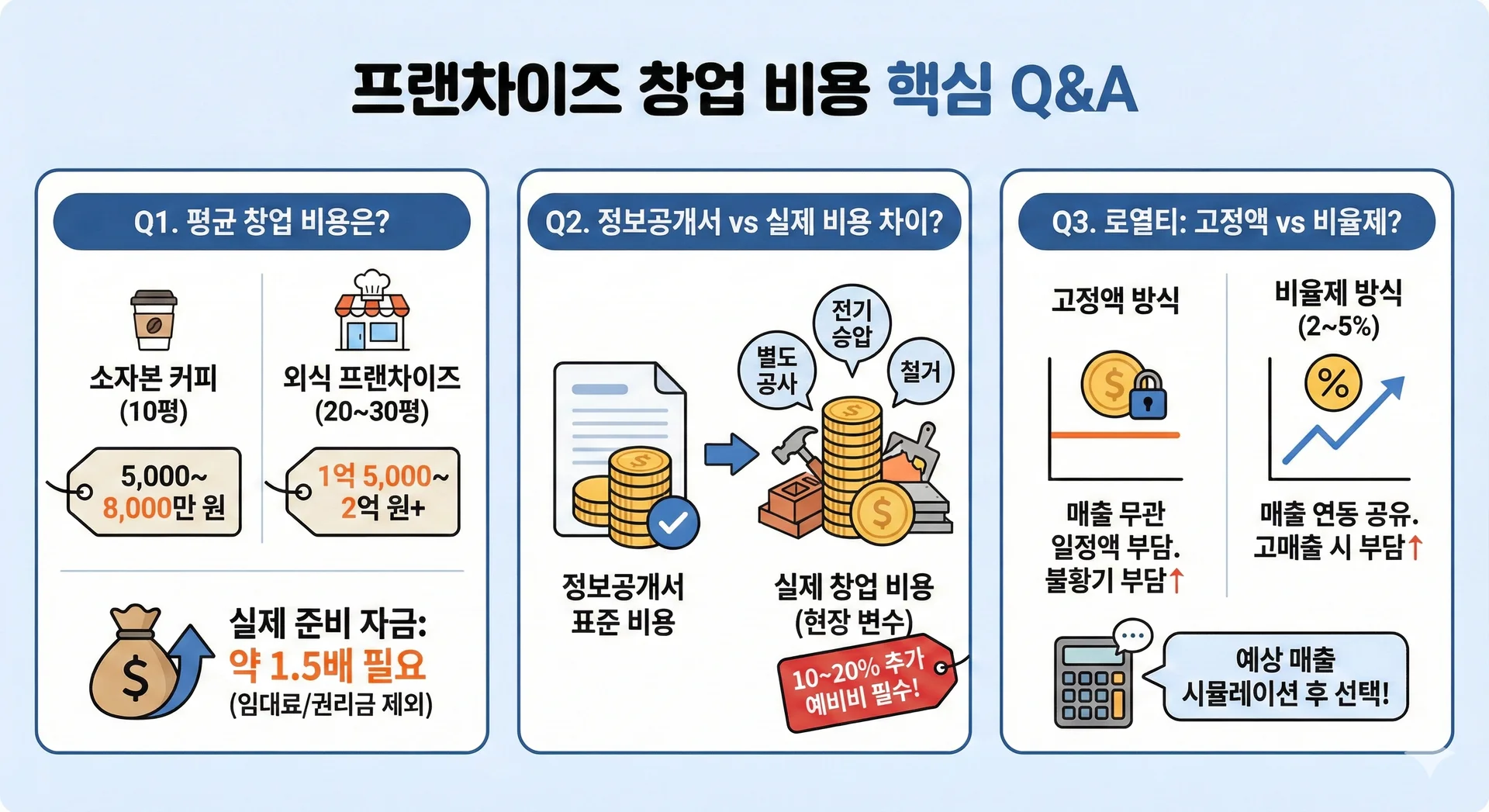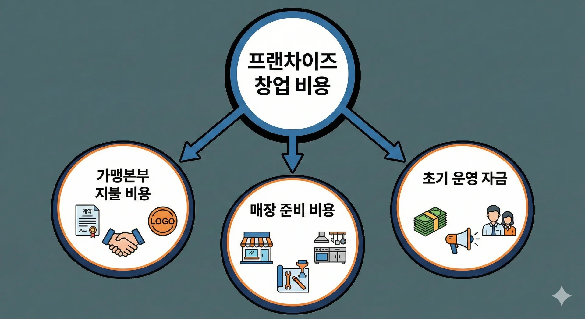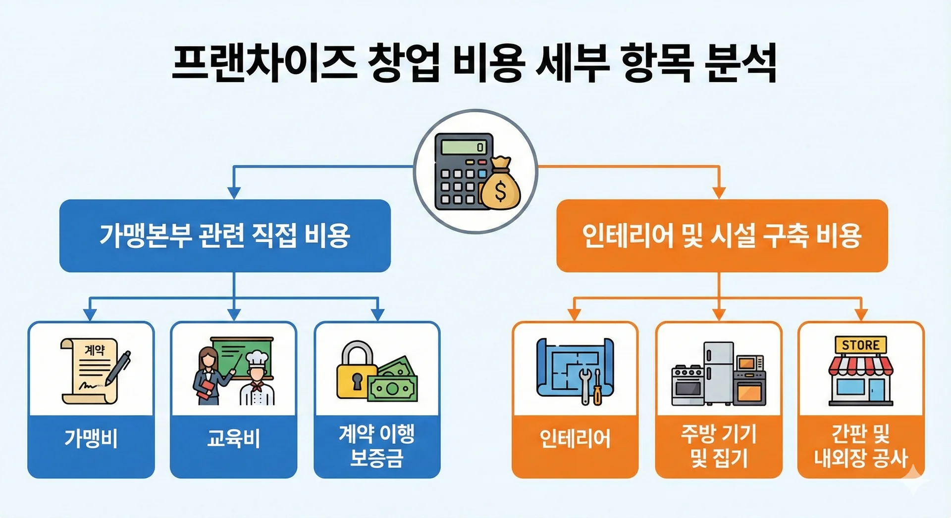 ์ด๋ ํฌ๊ฒ ๊ฐ๋งน๋ณธ๋ถ ์ง๋ถ ๋น์ฉ, ๋งค์ฅ ์ค๋น ๋น์ฉ, ์ด๊ธฐ ์ด์ ์๊ธ์ ์ธ ๊ฐ์ง ์นดํ ๊ณ ๋ฆฌ๋ก ๋๋ฉ๋๋ค.