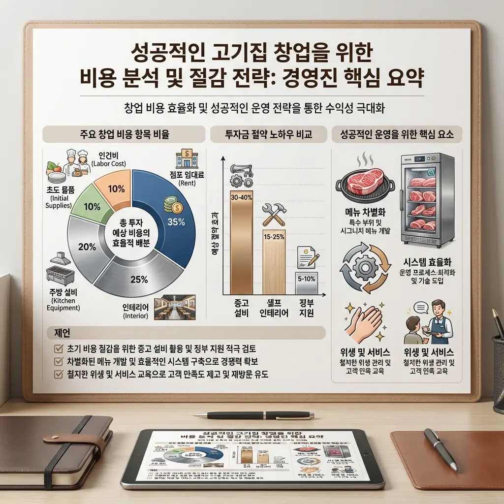 막대한 초기 투자 비용 앞에서 좌절하지 마세요! 현실적으로 적용 가능한 비용 절감 노하우를 활용하면 충분히 합리적인 비용으로 고기집 창업에 도전할 수 있습니다.