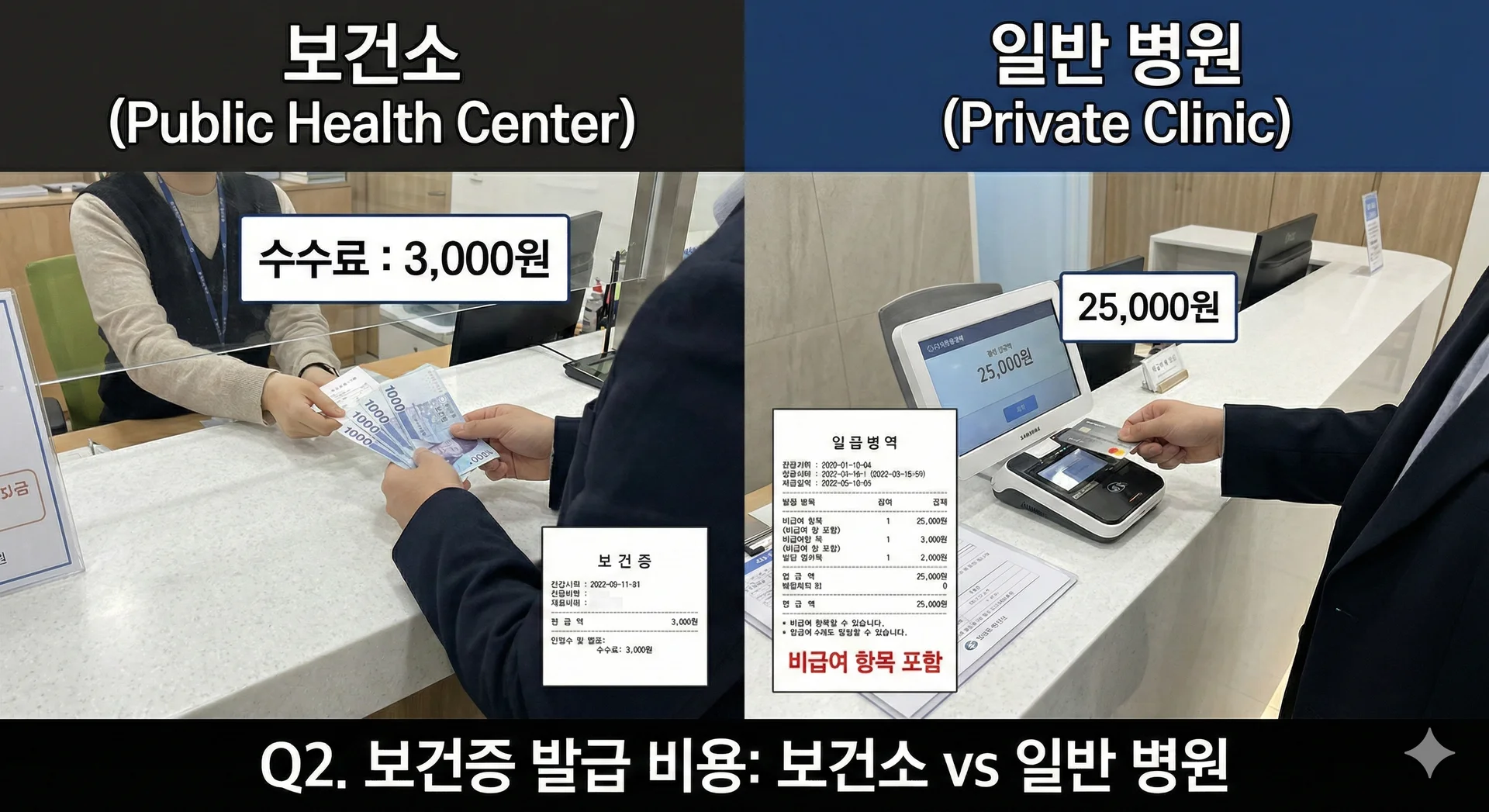 Q2. ๋ณด๊ฑด์ฆ ๋ฐ๊ธ ๋น์ฉ์ ์ด๋ ์ ๋ ๋ฐ์ํ๋ฉฐ, ๋ณ์๋ง๋ค ๊ฐ๊ฒฉ ์ฐจ์ด๊ฐ ๋๋ ์ด์ ๋ ๋ฌด์์ธ๊ฐ์?
