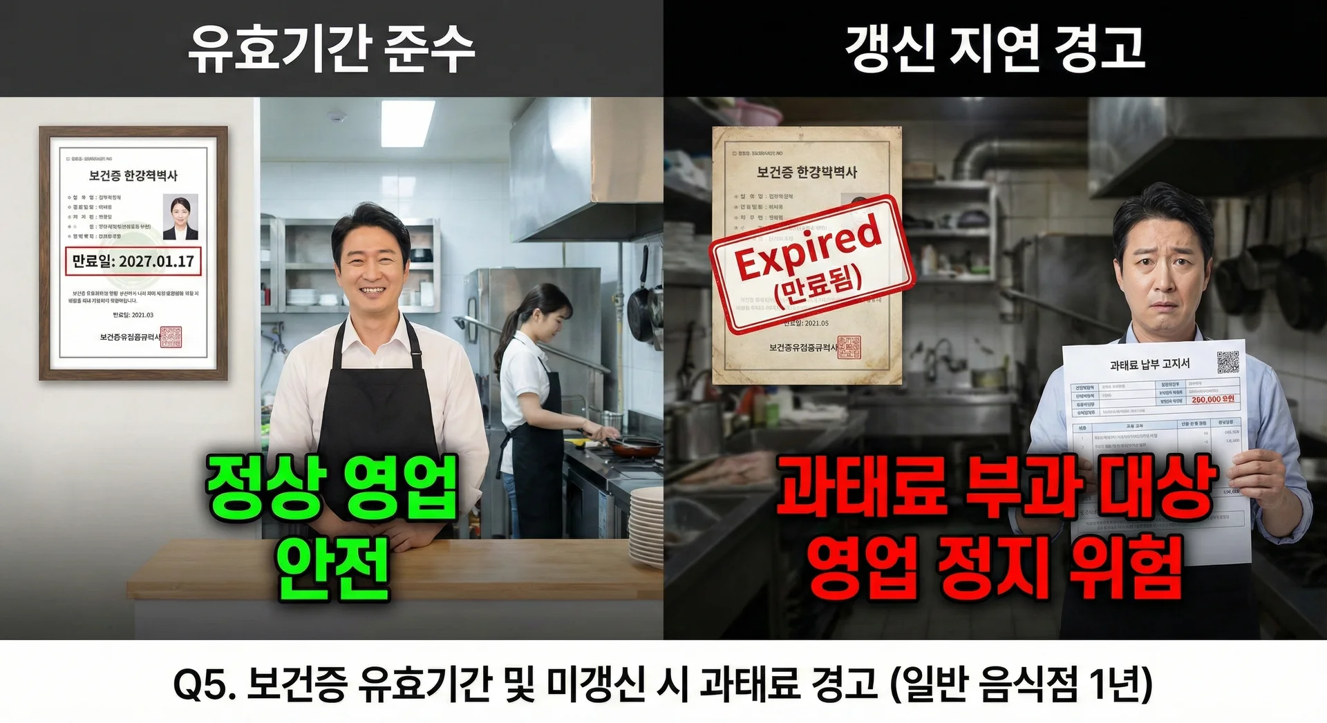 Q5. ๋ณด๊ฑด์ฆ์ ์ ํจ๊ธฐ๊ฐ์ ์ธ์ ๊น์ง์ด๋ฉฐ, ๊ฐฑ์ ์๊ธฐ๋ฅผ ๋์น๋ฉด ์ด๋ค ๋ฒ์ ๋ถ์ด์ต์ด ์๋์?