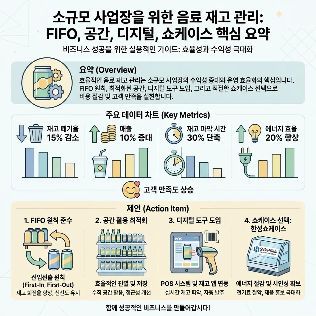 💡 TIP: 한성쇼케이스(https://hansungshowcase.kr/)와 같은 전문 업체에서는 최신 기술이 적용된 쇼케이스를 제공하여 위생 및 온도 관리에 큰 도움을 줍니다.