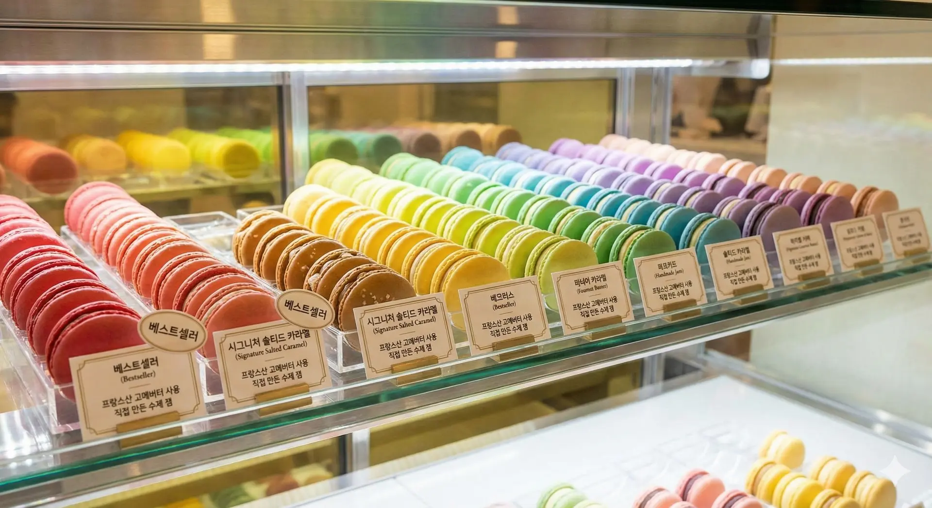 ์กฐ๋ช ์ ํ ์ ์ฃผ๋ฐฑ์(์ฝ 4000K)์ ๋ถ๋๋ฌ์ด ๋น์ ์ ํํ๋ฉด ๋ง์นด๋กฑ์ด ๋์ฑ ๋จน์์ง์ค๋ฝ๊ฒ ๋ณด์ ๋๋ค.