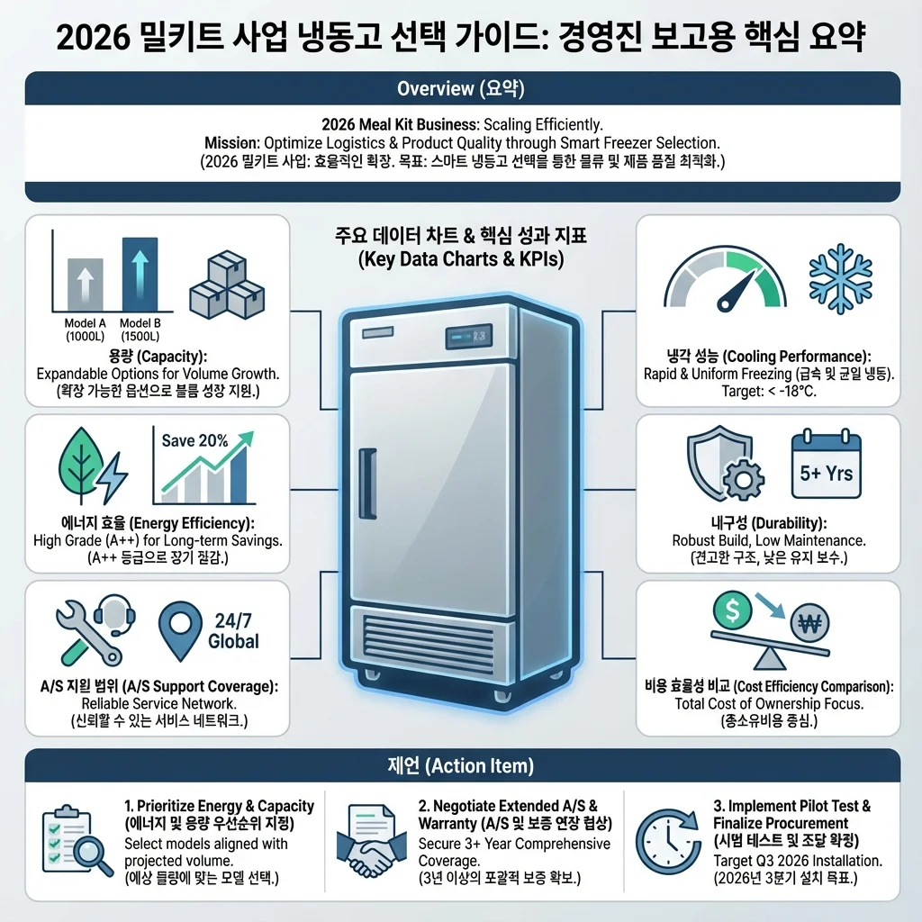 이 종합 가이드에서는 밀키트 사업자를 위한 최적의 냉동고 선택 기준과 주요 브랜드별 핵심 비교 포인트를 상세히 다룹니다.