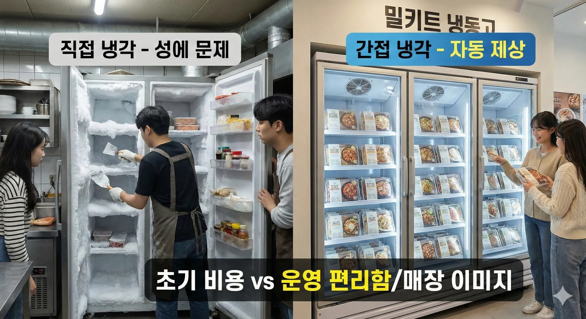 μμ μ© λ§€μ₯μμλ λ°λμ 'κ°μ λκ° λ°©μ(Fan Cooling)'μ μ±νν μλ μ μ(Auto-Defrost) κΈ°λ₯μ΄ μλ μ νμ μ νν΄μΌ ν©λλ€.