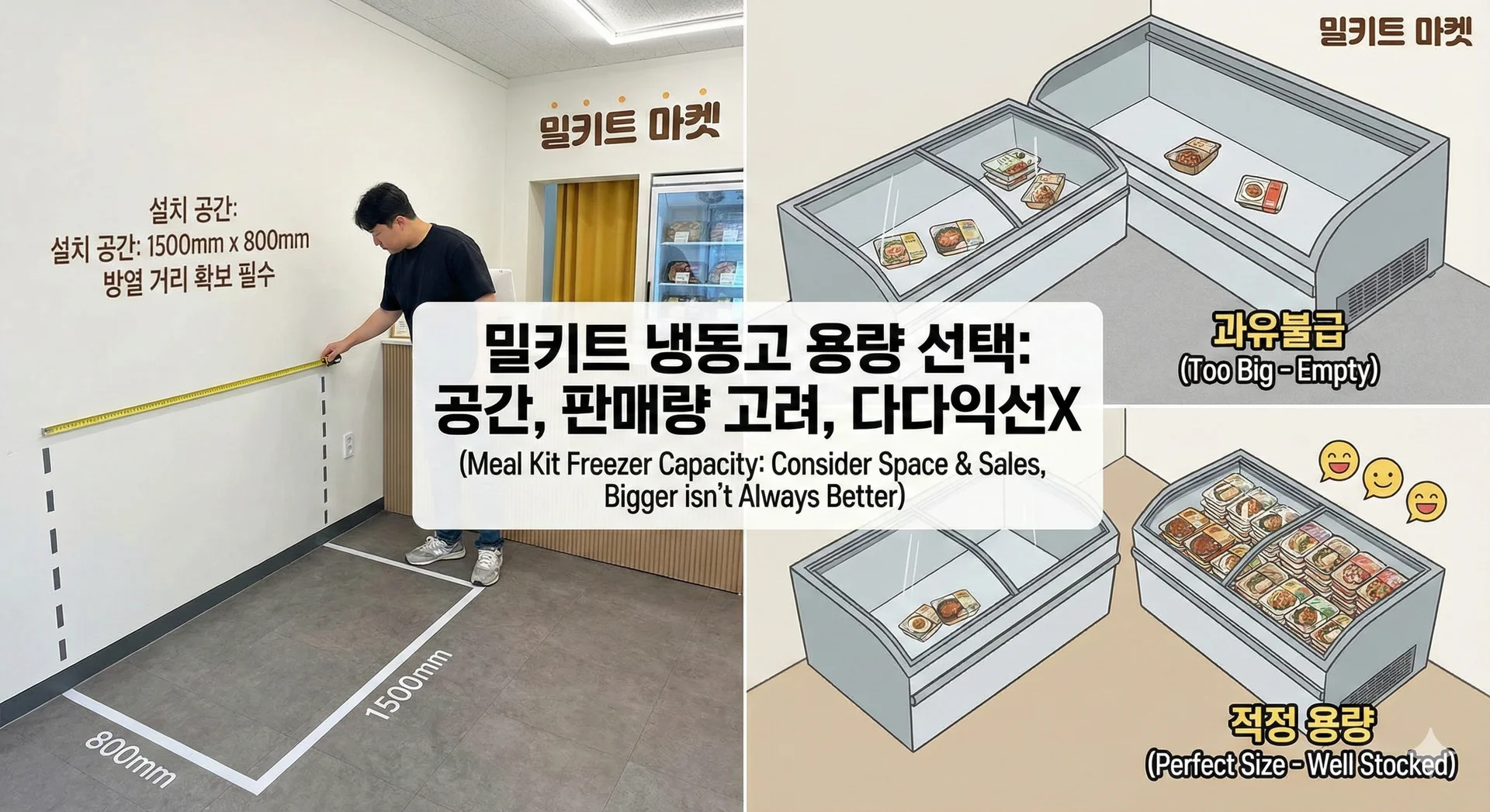 λ§€μ₯ 곡κ°κ³Ό μμ μ¬κ³ λμ κ³ λ €νμ¬ κ³ κ°μ΄ 보기 νΈν μ΅μ μ μ¬μ΄μ¦λ₯Ό μ ννμΈμ.