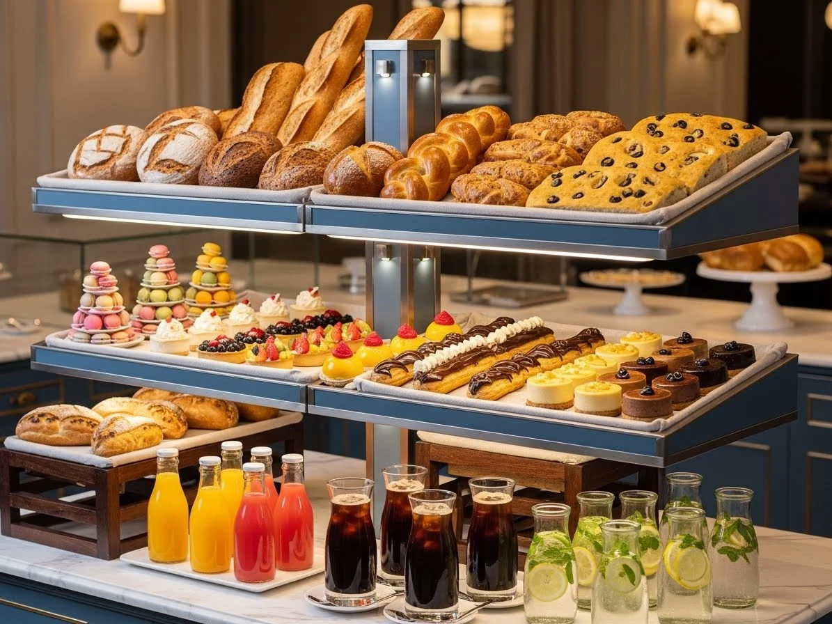 다단 쇼케이스는 카페, 베이커리, 편의점, 식료품점 등 다양한 사업장에서 제품의 시각적 매력을 극대화하고, 신선도를 유지하며, 공간 효율성을 높이는 데 핵심적인 역할을 합니다.