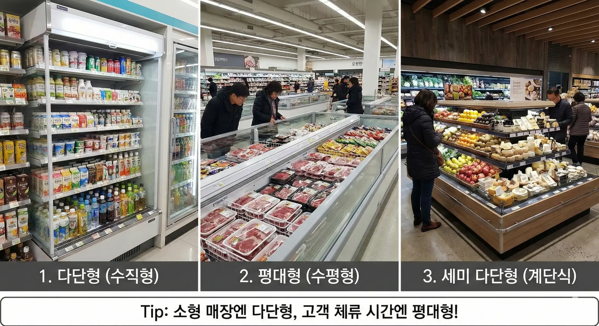 Tip: 10ํ ๋ฏธ๋ง์ ์ํ ๋งค์ฅ์ด๋ผ๋ฉด ๊ณต๊ฐ ํ์ฉ๋๊ฐ ๋์ '๋ค๋จํ'์, ๊ณ ๊ฐ์ ์ฒด๋ฅ ์๊ฐ์ ๋๋ฆฌ๊ณ ์ถ๋ค๋ฉด ์ค์์ 'ํ๋ํ'์ ๋ฐฐ์นํ๋ ์ ๋ต์ด ์ข์ต๋๋ค.