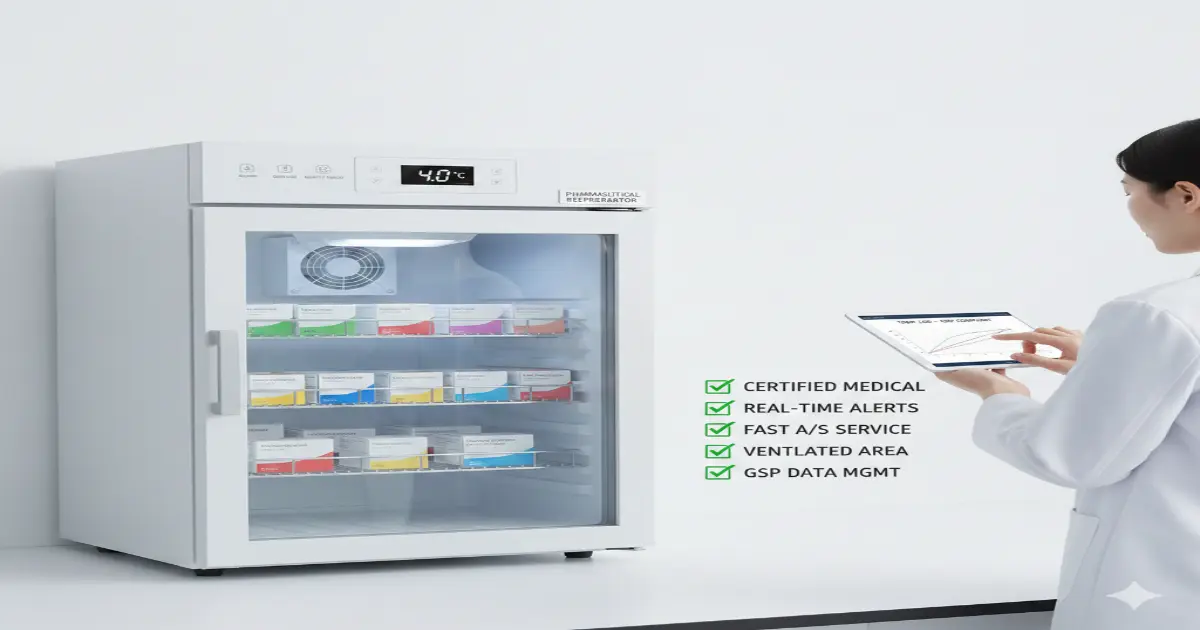 ๋ฐ๋ฉด ์ฝํ ๋์ฅ๊ณ ๋ ์์ฝํ ๋ณด๊ด ๊ท์ ์ ์ค์ํ๊ธฐ ์ํด ์ ๋ฐํ ์จ๋ ์ ์ด ์์คํ ์ ๊ฐ์ถ๊ณ ์์ต๋๋ค.