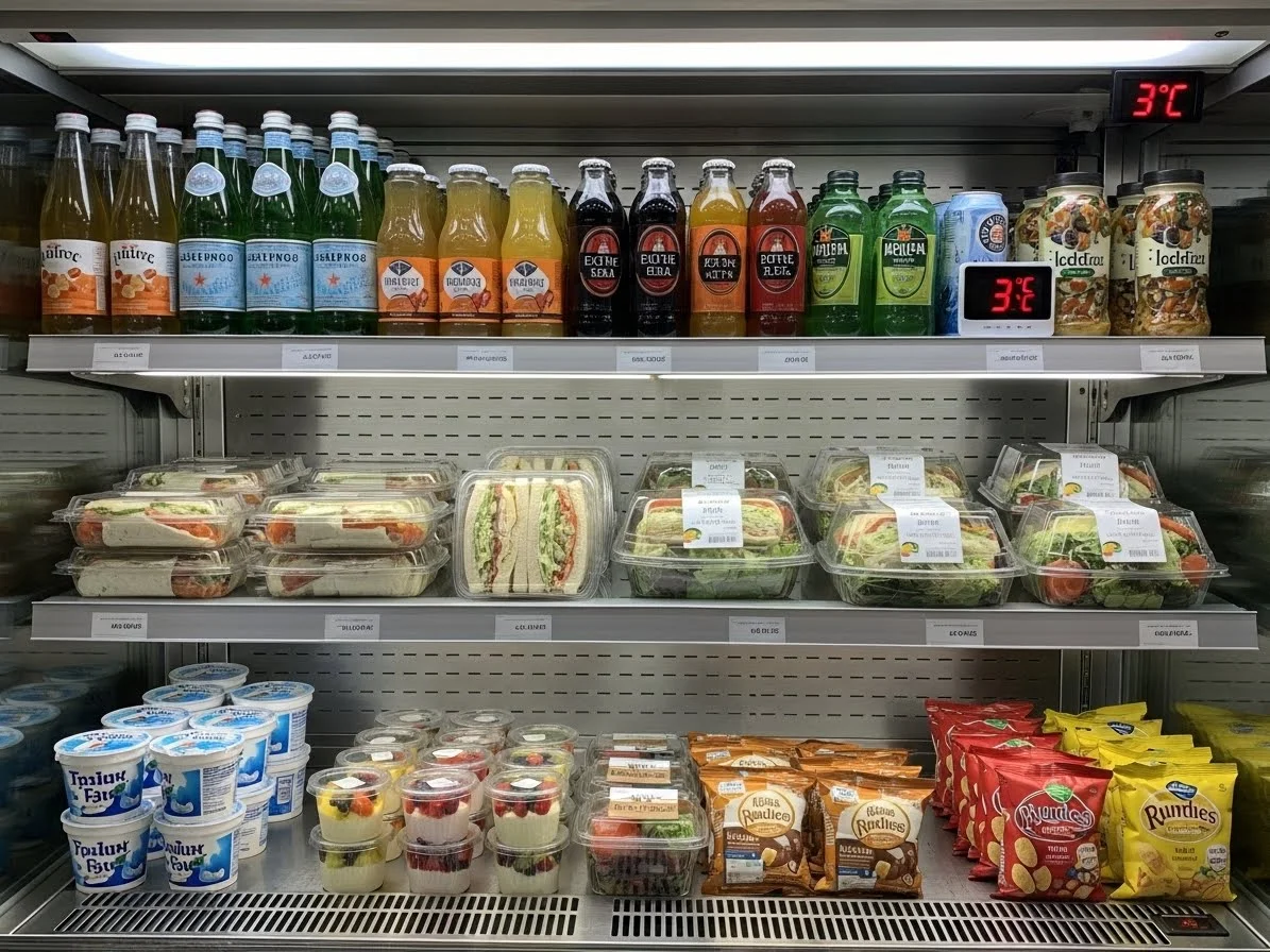 쇼케이스 내부에 제품을 너무 많이 채우면 공기 순환이 제대로 되지 않아 냉각 효율이 떨어집니다. 반대로 너무 비워두는 것도 좋지 않아요.
