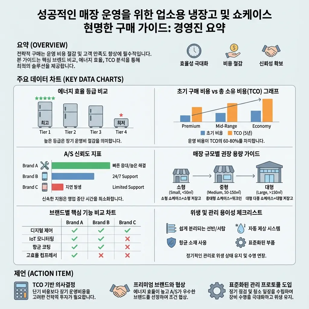 성공적인 매장 운영을 위한 업소용 냉장고 및 쇼케이스 현명한 구매 가이드: 핵심 브랜드 비교 및 에너지 효율 전략