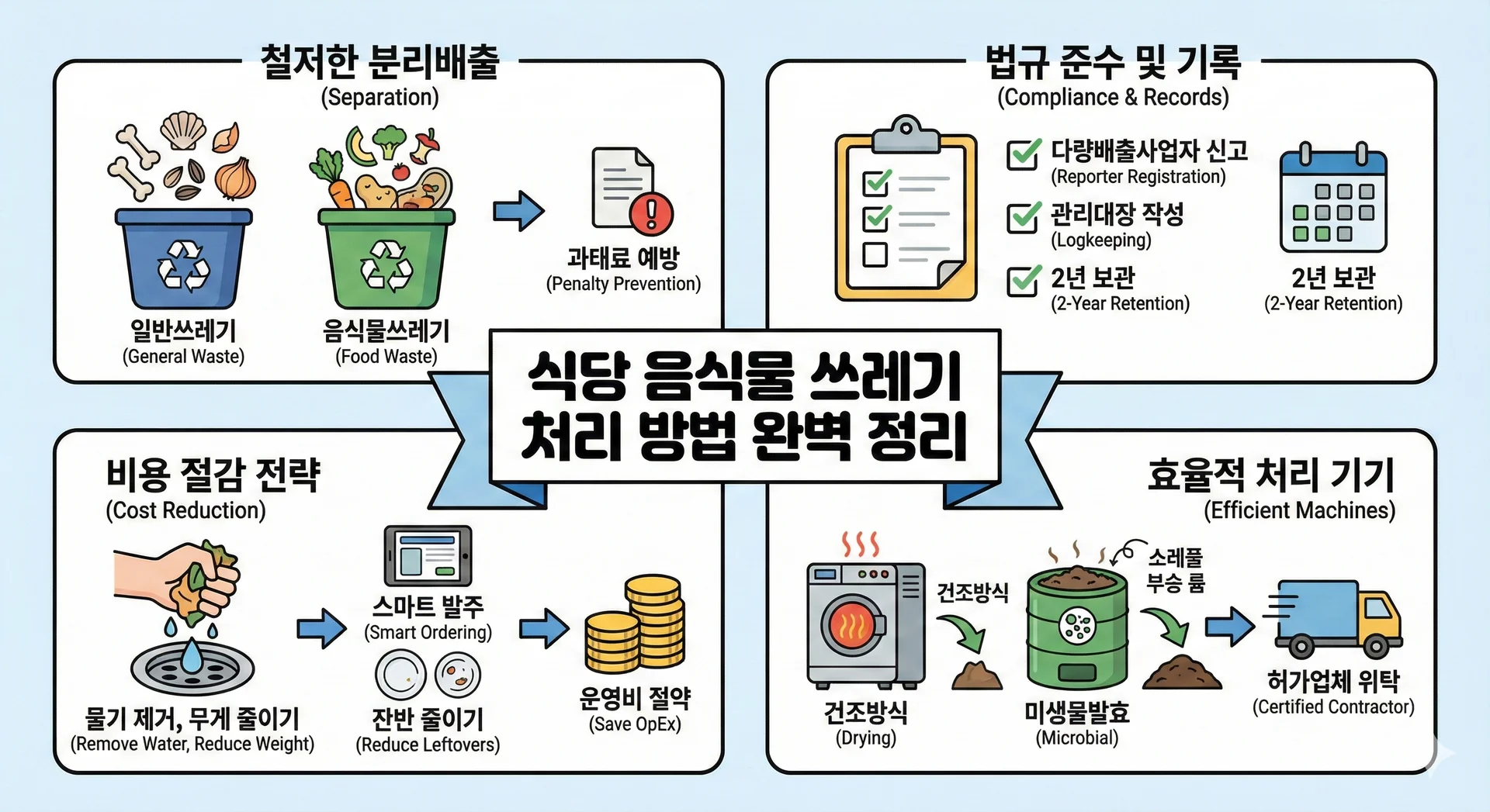 ๐ฝ๏ธ ์๋น ์์๋ฌผ ์ฐ๋ ๊ธฐ ์ฒ๋ฆฌ ๋ฐฉ๋ฒ๊ณผ ๋น์ฉ ์ ๊ฐ ๊ฐ์ด๋: ์ด๋ณด ์ฌ์ฅ๋์ ์ํ ์๋ฒฝ ์ ๋ฆฌ