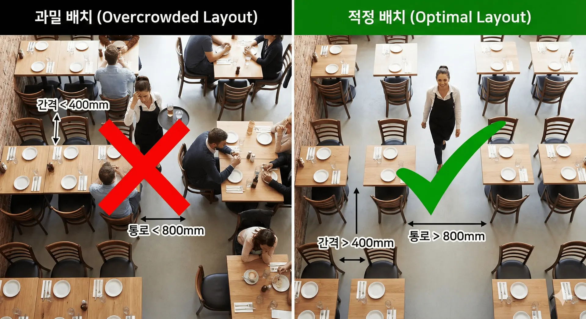 ์ผ๋ฐ์ ์ผ๋ก ํ ์ด๋ธ๊ณผ ํ ์ด๋ธ ์ฌ์ด๋ ์ต์ 400~500mm,