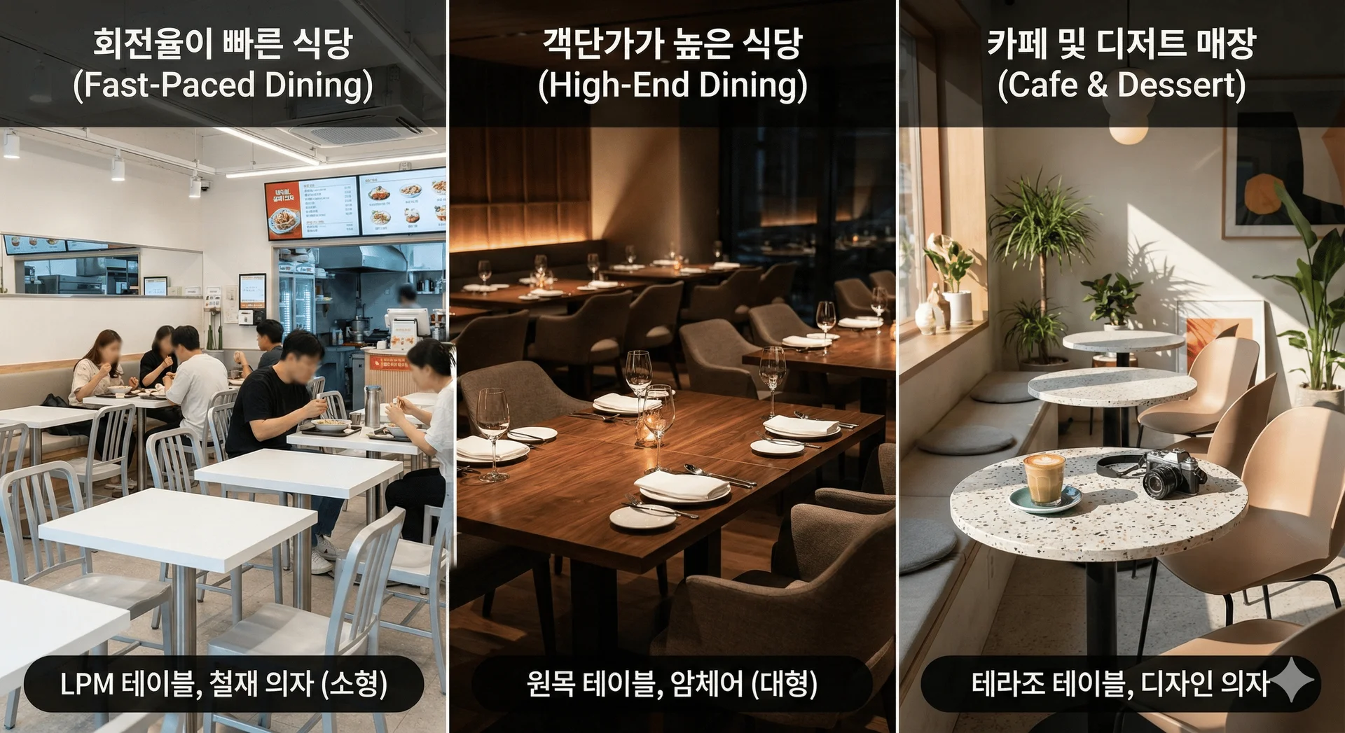 ํ์ง๋ง ๋๋ฌด ๋์์ธ์๋ง ์น์คํ์ฌ ํ ์ด๋ธ ๋์ด๊ฐ ์ง๋์น๊ฒ ๋ฎ๊ฑฐ๋ ์์๊ฐ ๋ถํธํ๋ฉด ์ฌ๋ฐฉ๋ฌธ์จ์ด ๋จ์ด์ง ์ ์์ผ๋ ์ฃผ์ํด์ผ ํฉ๋๋ค.