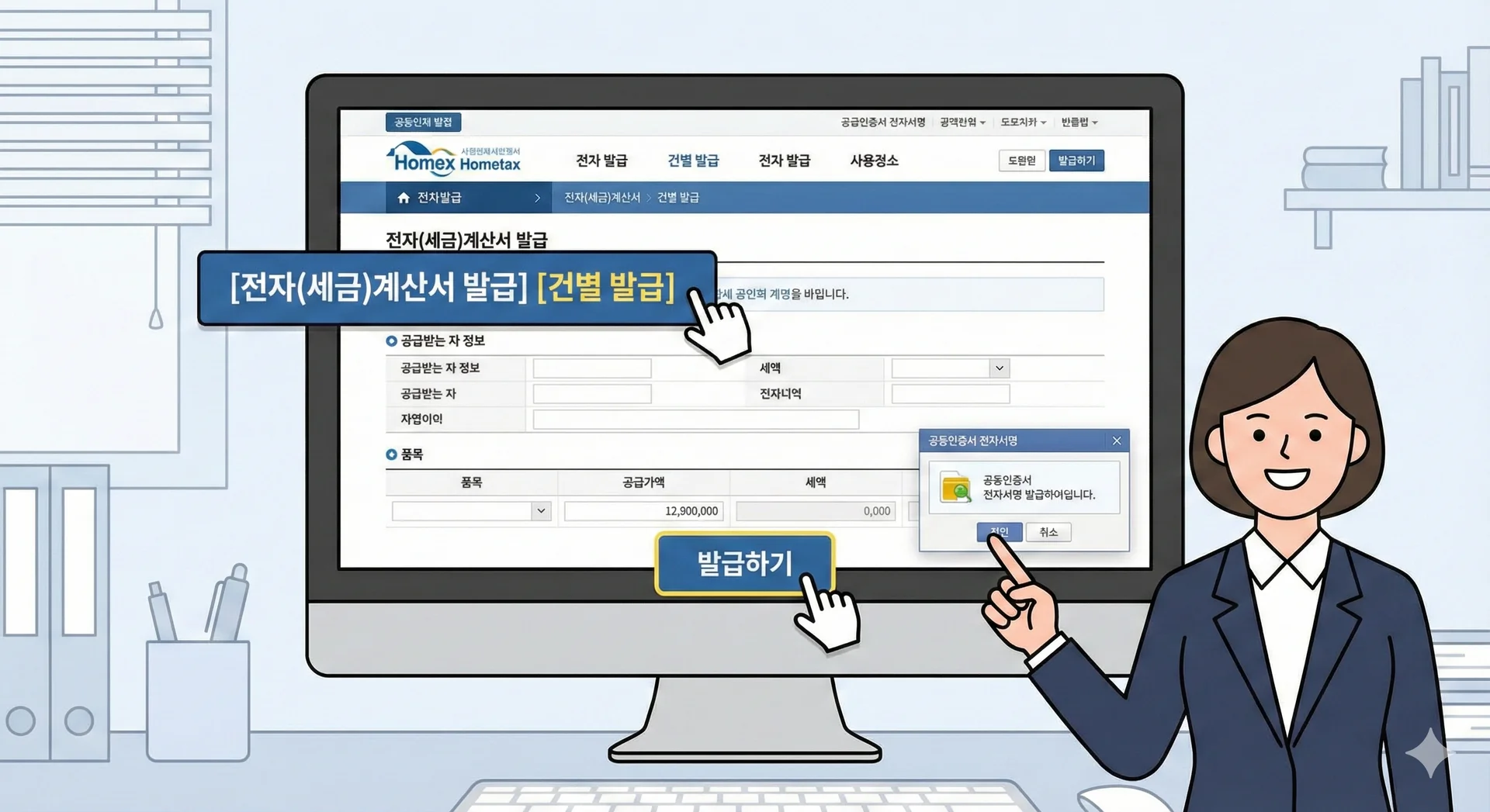 νλͺ©, κ·κ²©, μλ, λ¨κ° λ±μ μ λ ₯νκ³ '곡κΈκ°μ‘'κ³Ό 'μΈμ‘'μ νμΈν©λλ€.