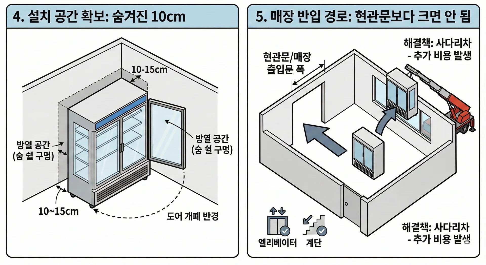 ๋งค์ฅ ๋ฌธ, ์๋ฆฌ๋ฒ ์ดํฐ, ๊ณ๋จ ๋ฑ ์ด๋ ๊ฒฝ๋ก์ ํญ์ ๋ฏธ๋ฆฌ ํ์ธํด์ผ ์ฌ๋ค๋ฆฌ์ฐจ ๋น์ฉ ๋ฑ ์๊ธฐ์น ๋ชปํ ์ถ๊ฐ ์ง์ถ์ ๋ง์ ์ ์์ต๋๋ค.