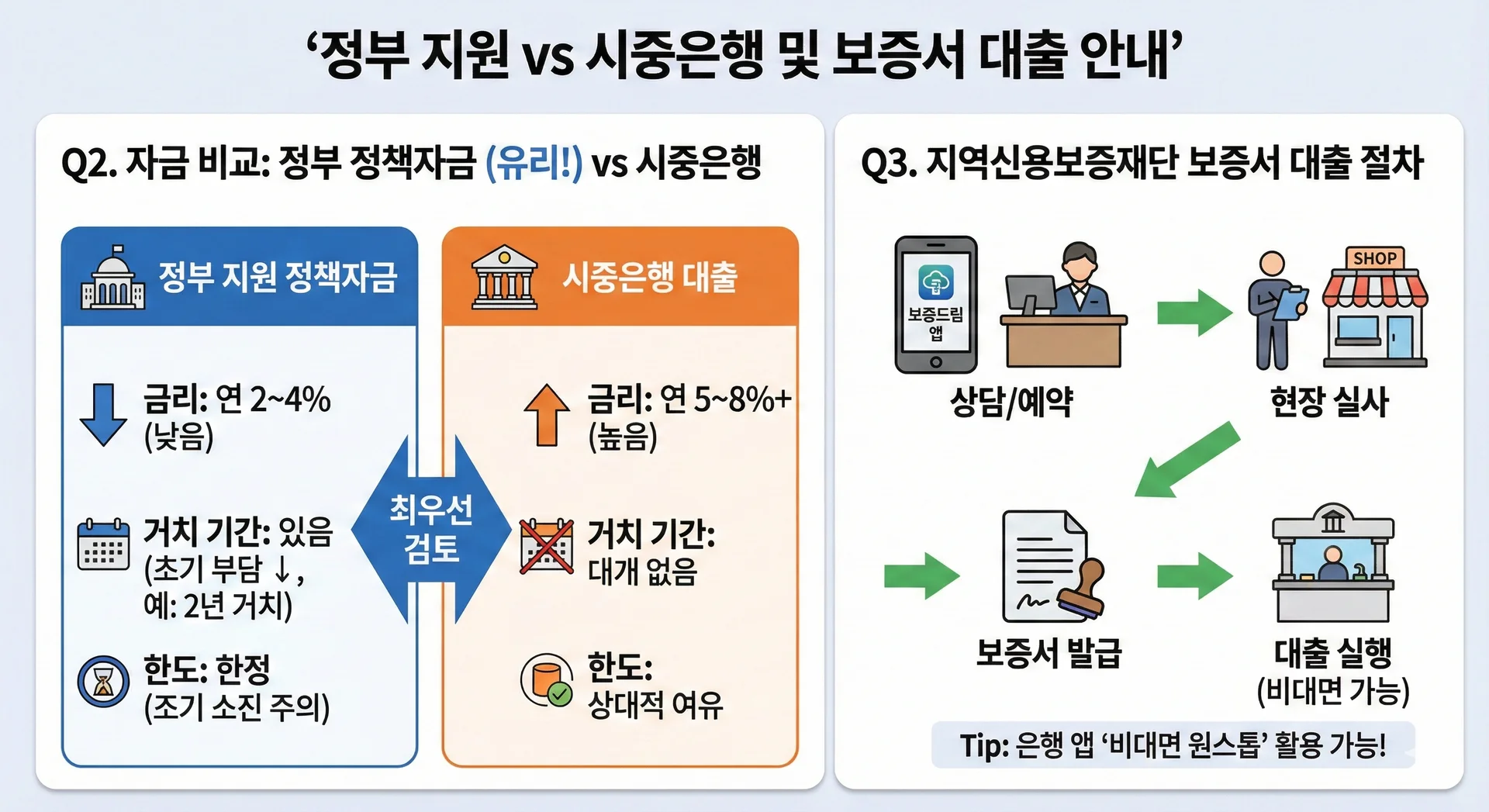 Q2. ์ ๋ถ ์ง์ ์ ์ฑ ์๊ธ๊ณผ ์์ค์ํ ๋์ถ ์ค ๋ฌด์์ด ๋ ์ ๋ฆฌํ๊ฐ์?