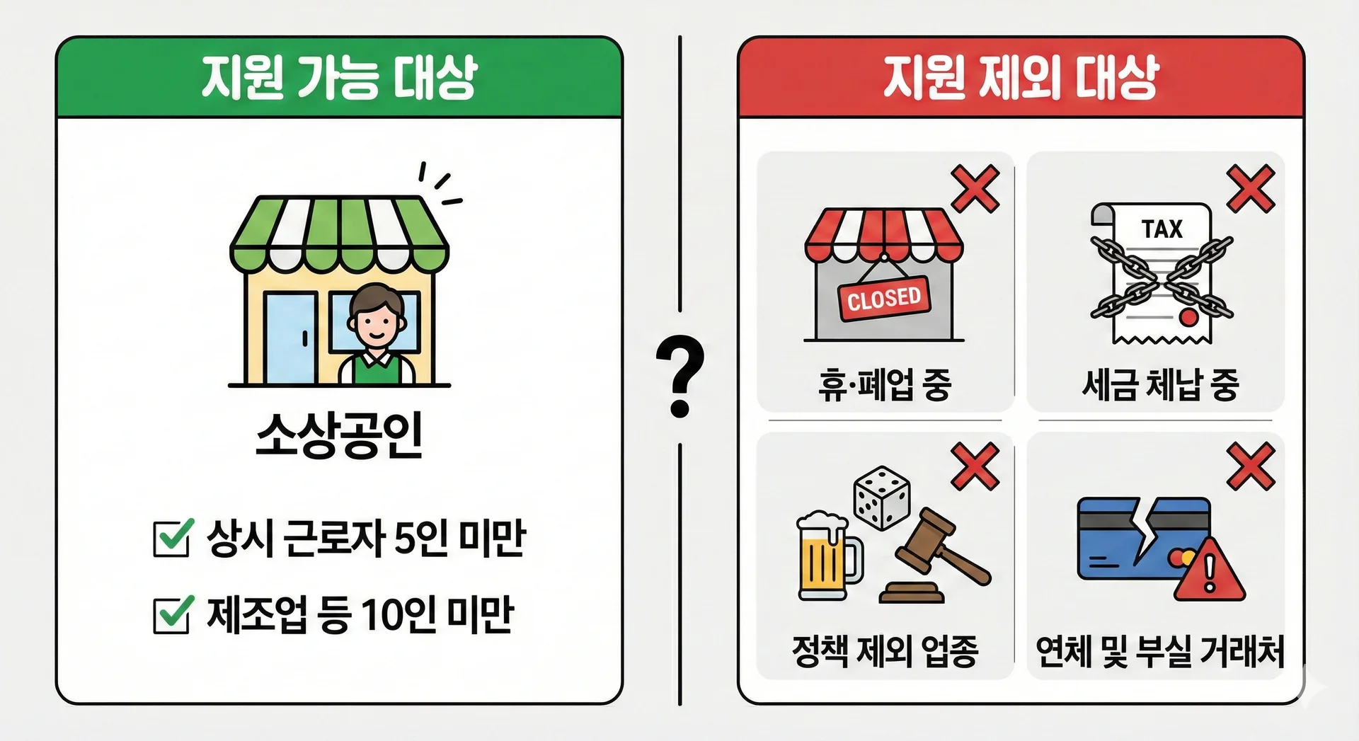๊ธฐ๋ณธ์ ์ผ๋ก ใ์์๊ณต์ธ ๋ณดํธ ๋ฐ ์ง์์ ๊ดํ ๋ฒ๋ฅ ใ์ ๋ฐ๋ฅธ ์์๊ณต์ธ(์์ ๊ทผ๋ก์ 5์ธ ๋ฏธ๋ง, ์ ์กฐ์ ๋ฑ ์ผ๋ถ ์ ์ข ์ 10์ธ ๋ฏธ๋ง)์ด์ด์ผ ํฉ๋๋ค.