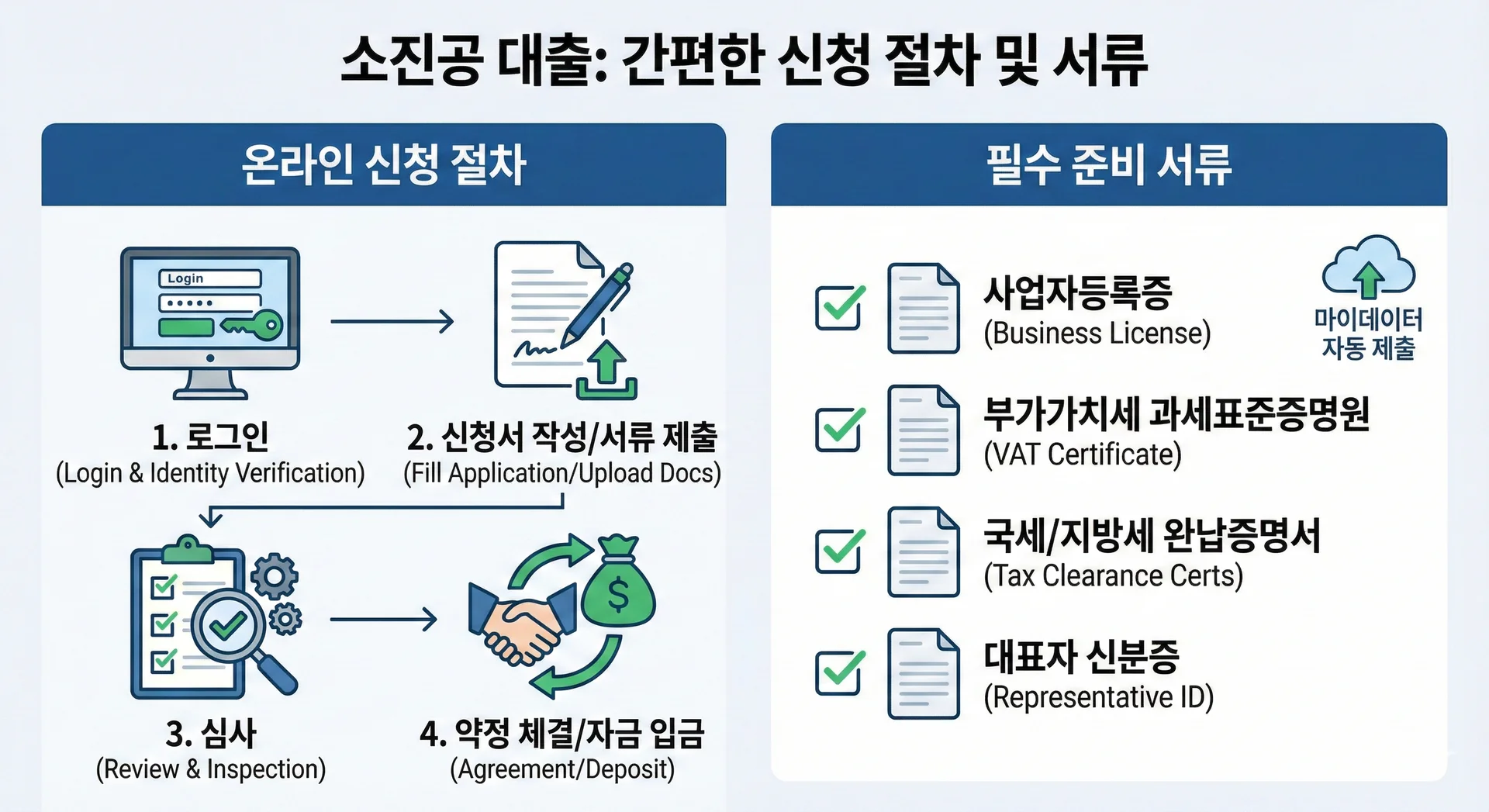 ๋ณด์ฆ๊ธฐ๊ด์ด๋ ์ํ์ ๊ฑฐ์น์ง ์๊ณ ์์ง๊ณต์์ ์ง์ ์ ์ฒญ๋ถํฐ ์ฌ์ฌ, ๋์ถ ์คํ๊น์ง ์์คํฑ์ผ๋ก ์งํํ๋ ๋ฐฉ์์ ๋๋ค.