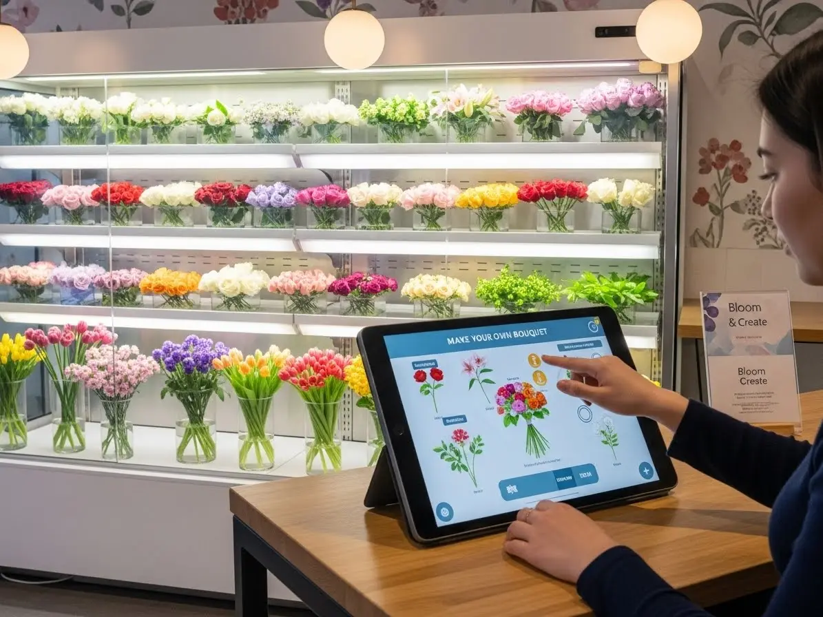'나만의 꽃다발 만들기' 시뮬레이터: 고객이 원하는 꽃과 포장지를 직접 선택하여 가상의 꽃다발을 만들어보는 체험을 제공해 보세요.