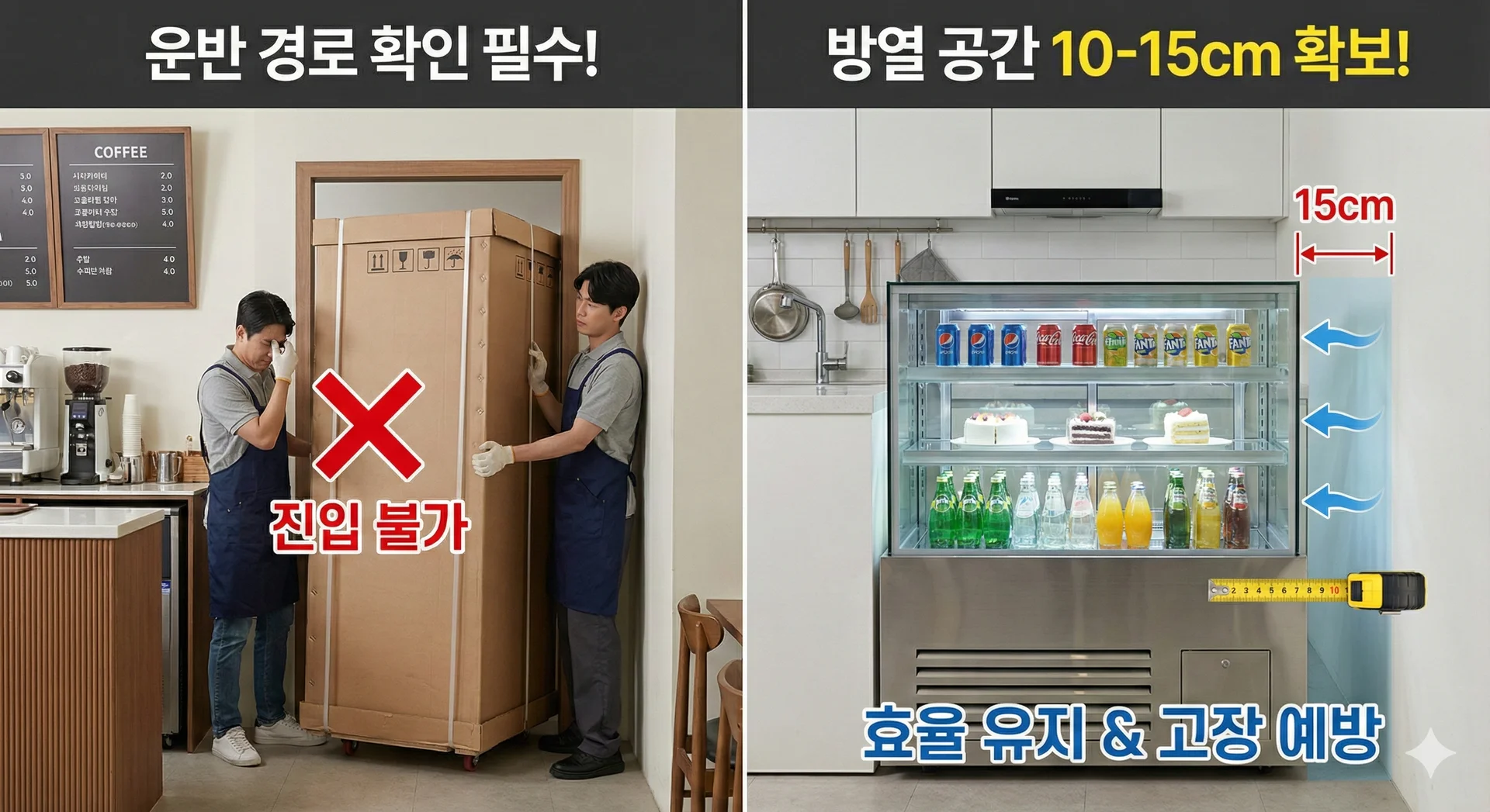 ๋ํ, ์ค์น ์ ๊ธฐ๊ณ์ค(์ปดํ๋ ์)์์ ๋ฐ์ํ๋ ์ด์ด ๋น ์ ธ๋๊ฐ ์ ์๋๋ก ๋ท๋ฉด๊ณผ ์ธก๋ฉด์ ์ต์ 10~15cm ์ด์์ ๋ฐฉ์ด ๊ณต๊ฐ์ ํ๋ณดํด์ผ ํฉ๋๋ค.