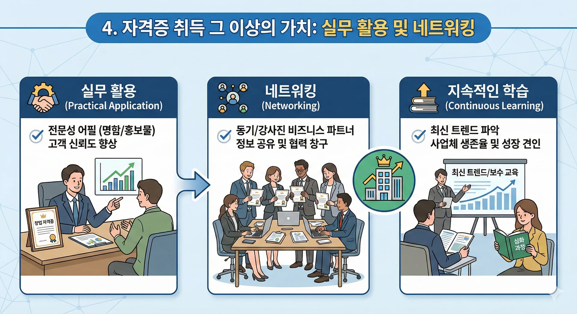 ์ด๋ ๋ณธ์ธ์ ์ ๊ณต์ด๋ ๊ฒฝ๋ ฅ๊ณผ ์ผ์นํ๋ ์ฐฝ์ ์๊ฒฉ์ฆ์ ๋ณด์ ํ๊ณ ์๋ค๋ฉด ์ฌ์ ๊ณํ์์ ์ ๋ขฐ๋๊ฐ ํฌ๊ฒ ๋์์ง๋๋ค.