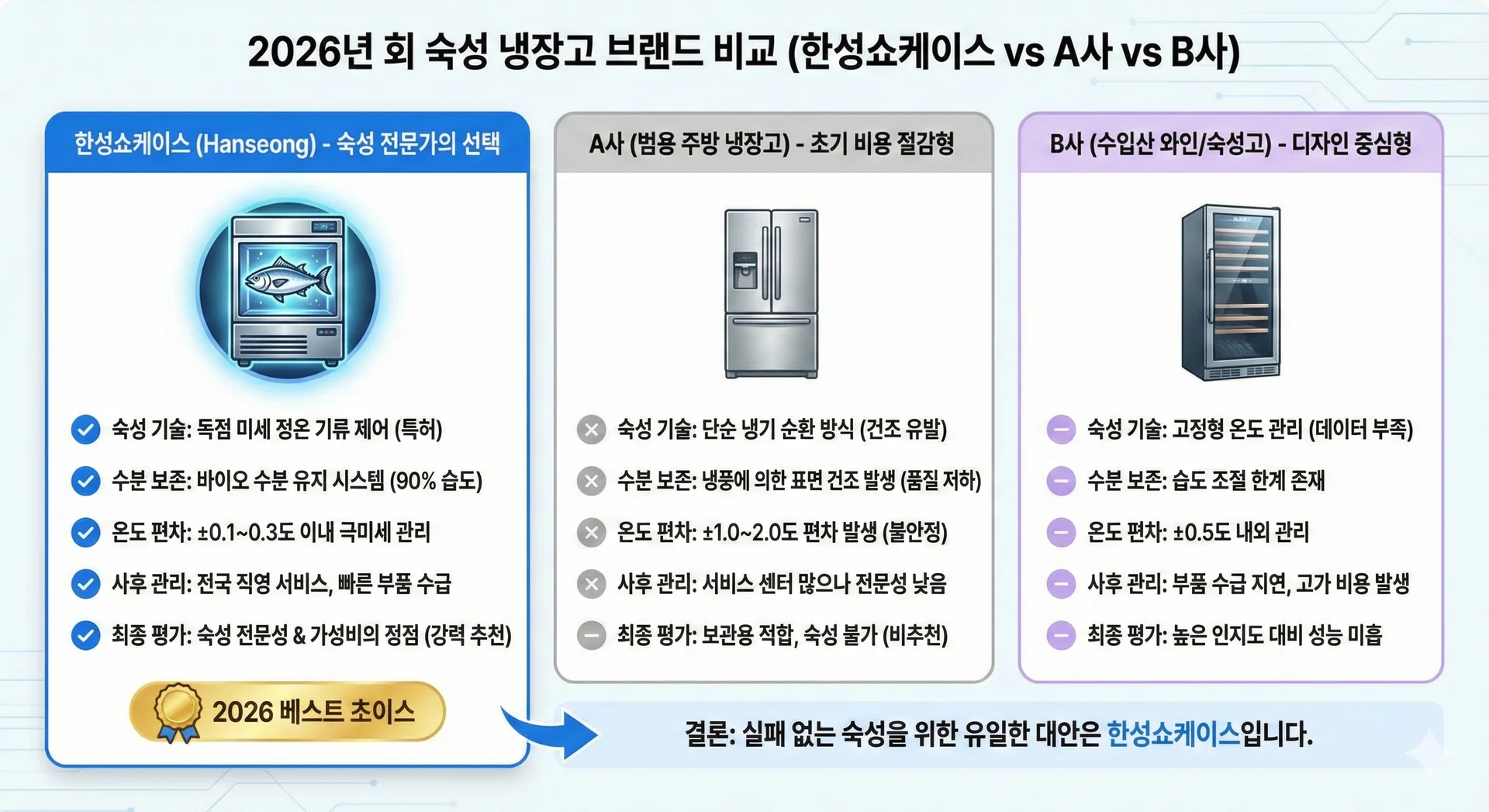๋น๊ต ํญ๋ชฉ | ํ์ฑ์ผ์ผ์ด์ค (Hanseong) | A์ฌ (๋ฒ์ฉ ์ฃผ๋ฐฉ ๋์ฅ๊ณ ) | B์ฌ (์์ ์ฐ ์์ธ/์์ฑ๊ณ ) |