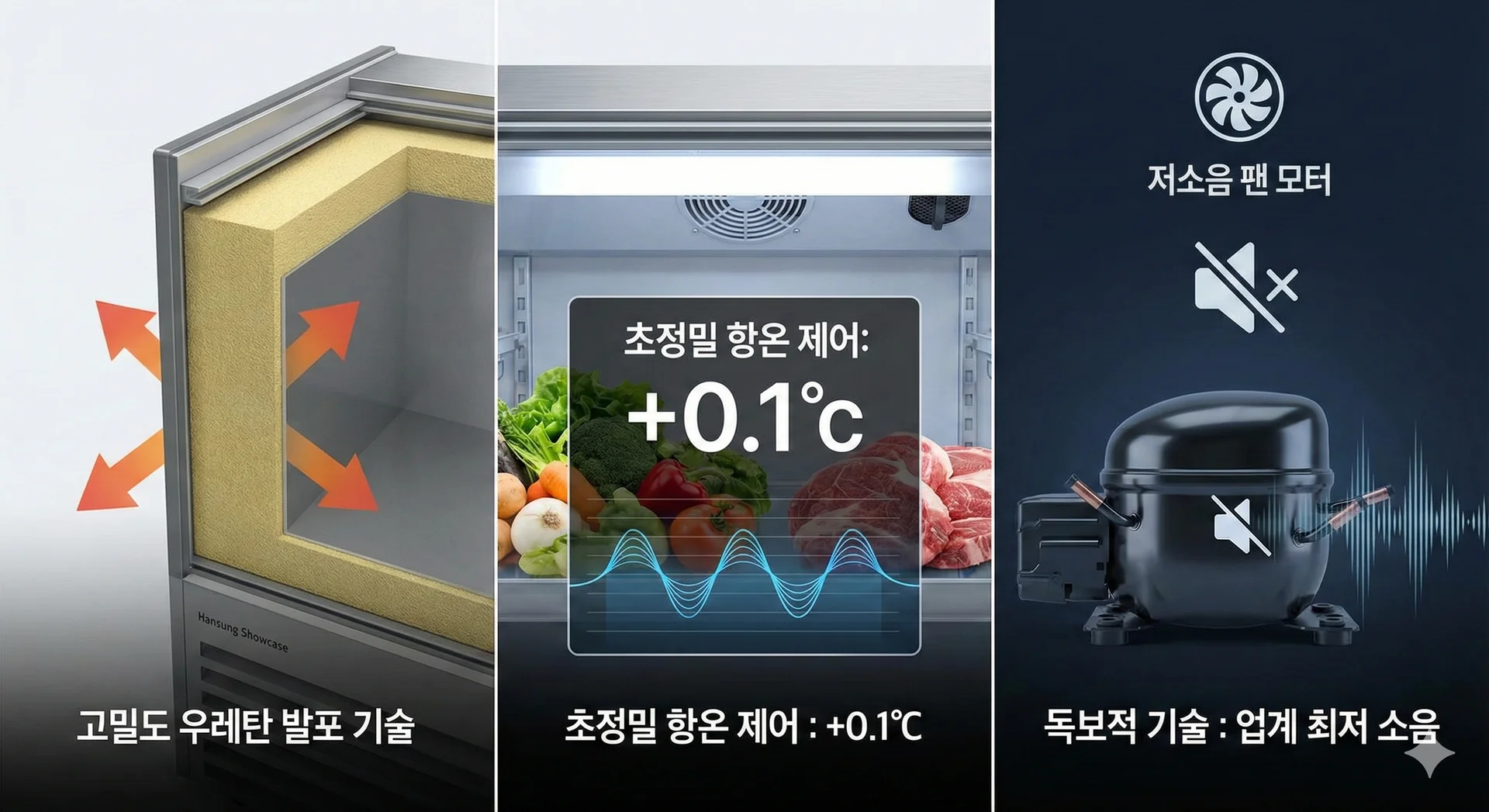 일반적인 쇼케이스나 냉장고와는 차원이 다른 한성쇼케이스만의 강점은 바로