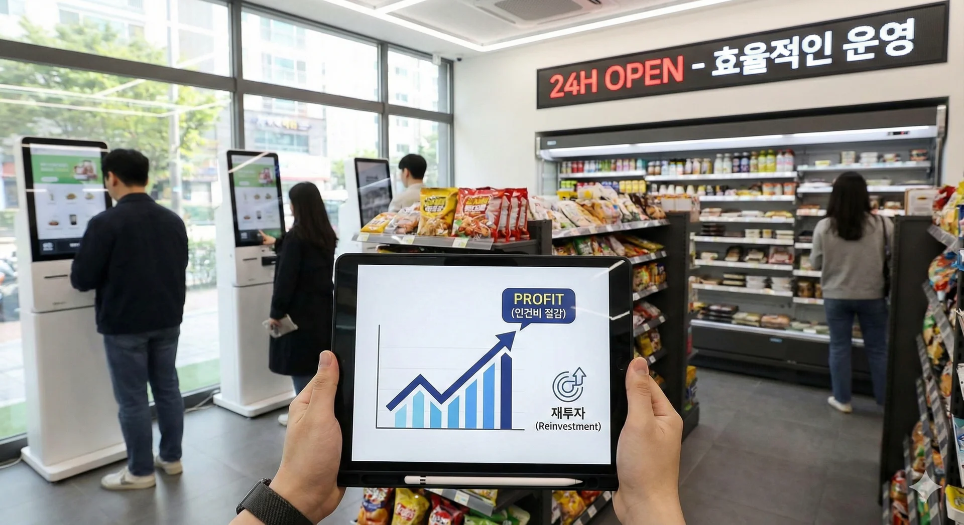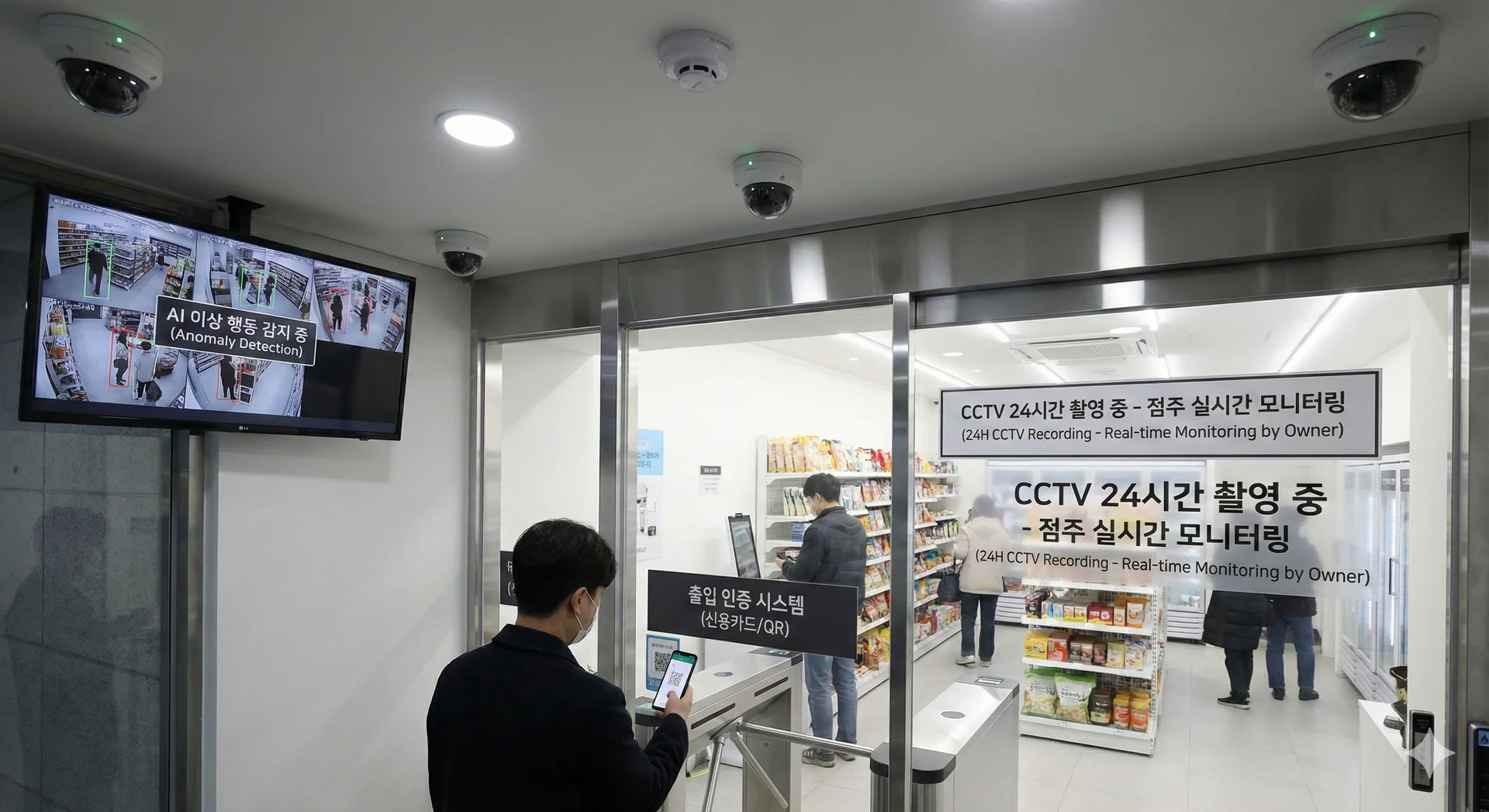 ๋ฌด์ธ ๊ฒฐ์ ํค์ค์คํฌ, CCTV ๋ณด์ ์์คํ , ์ถ์ ์ธ์ฆ ์ฅ์น ๋ฑ์ด ํฌํจ๋ฉ๋๋ค.