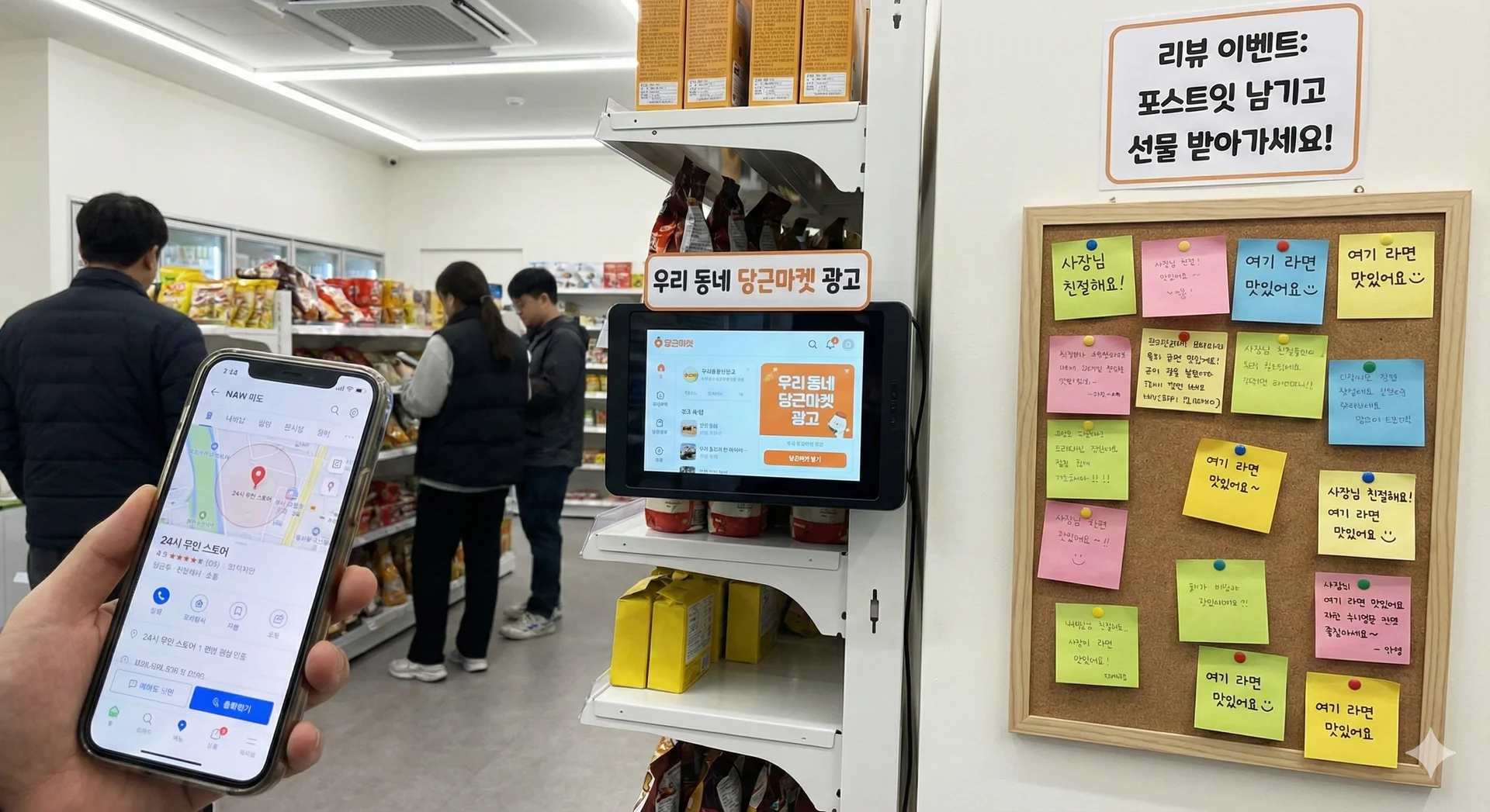 ๋ฌด์ธ ๋งค์ฅ ํน์ฑ์ ๋จ๊ณจ ํ๋ณด๊ฐ ์ค์ํ๋ฏ๋ก, ํฌ์คํธ์ ๊ฒ์ํ ๋ฑ์ ํ์ฉํด